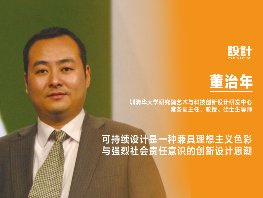 董治年,清華大學藝術與科學研究中心可持續設計方向博士、特聘教授、碩士生導師,深圳清華大學研究院藝術與科技創新設計研發中心常務副主任,2012ASLA榮譽獎獲得者。曾任 29 屆奧林匹克運動會組織委員會形象景觀處景觀經理,29 屆奧林匹克運動會組委會文化活動部先進個人(奧運景觀設計團隊),基本規劃建設處副處長,參與籌建深圳技術大學并負責大學校企合作及產學研工作。專著 3 部《共生與跨界:全球化背景下的環境可持續設計》《可持續研究的設計》《智慧環境設計與智能家居設計》等、譯著 2 部、“十二五”規劃教材 3 本《智慧環境設計》等,國際會議及國內論文 20 余篇(CSSCI、 北大核心 10 篇)。參與完成多項國家級生態可持續設計科研項目、獨立主持多項省部級科研項目。