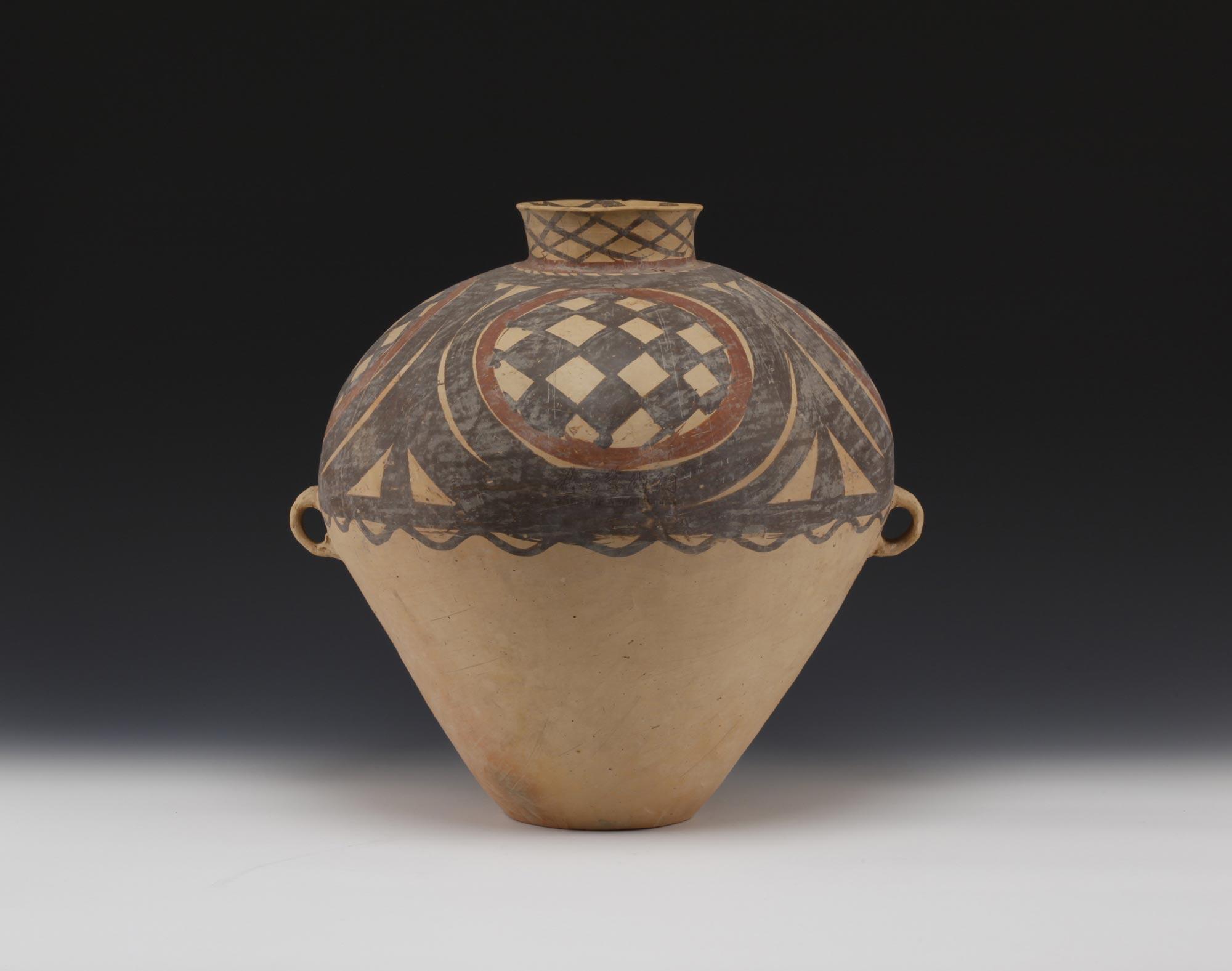 中國陶器誕生之初,作為生活用品在紋樣及造型上都反映出當時的審美風格及制作工藝。圖一、圖二展示的是原始社會陶器,底深、腹大、口小是二者共同特點,這樣的造型特點可以使功能性發揮最大,并在器物外部繪制了大量自然題材紋樣,如植物、動物、幾何紋樣,都反映了古人對自然的認識,表達了一種樸素自然觀。