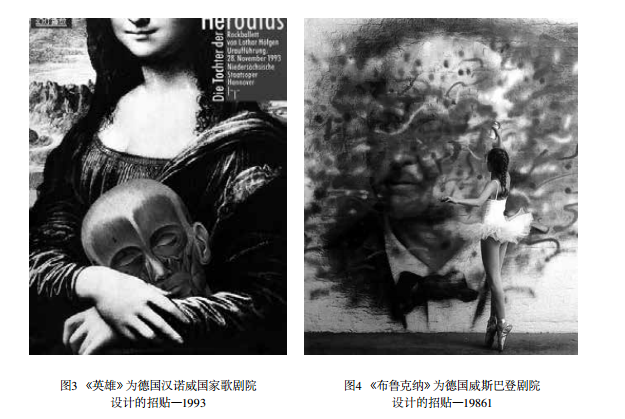 3 國際大師——霍爾戈·馬蒂斯的海報世界 ,他認為沒有一種藝術能像招貼畫中的交流那樣直接,這種交流也帶有感情色彩并將緊張與透露、神秘與信息玄妙地合為一體。他堅信文藝演出的海報設計應更注重其內容,即不僅僅本身要具有強烈的形式和視覺效果,運用心理學上的某些方法來揭示出戲劇或音樂本身所包涵的思想和意念的豐富層次。從而真正使觀眾對海報所表達信息本身——戲劇內容發生興趣,產生先睹為快的感召力。基于這種創作原則和觀念,他總是深入地研究劇本,發掘其中的意義,并試圖運用特異的表現手法來體現在海報的圖形創意上。使他的設計藝術的品質和格調,已經超過了純粹功能性和說明性的信息傳遞局限,賦予其作品一種異乎尋常的魅力和價值。(圖3,圖4)